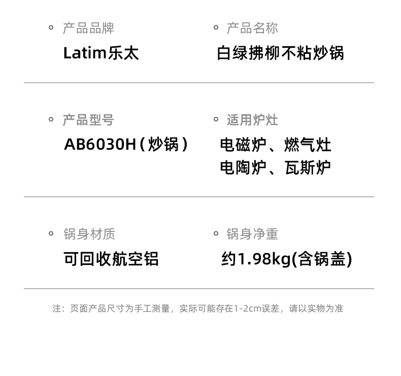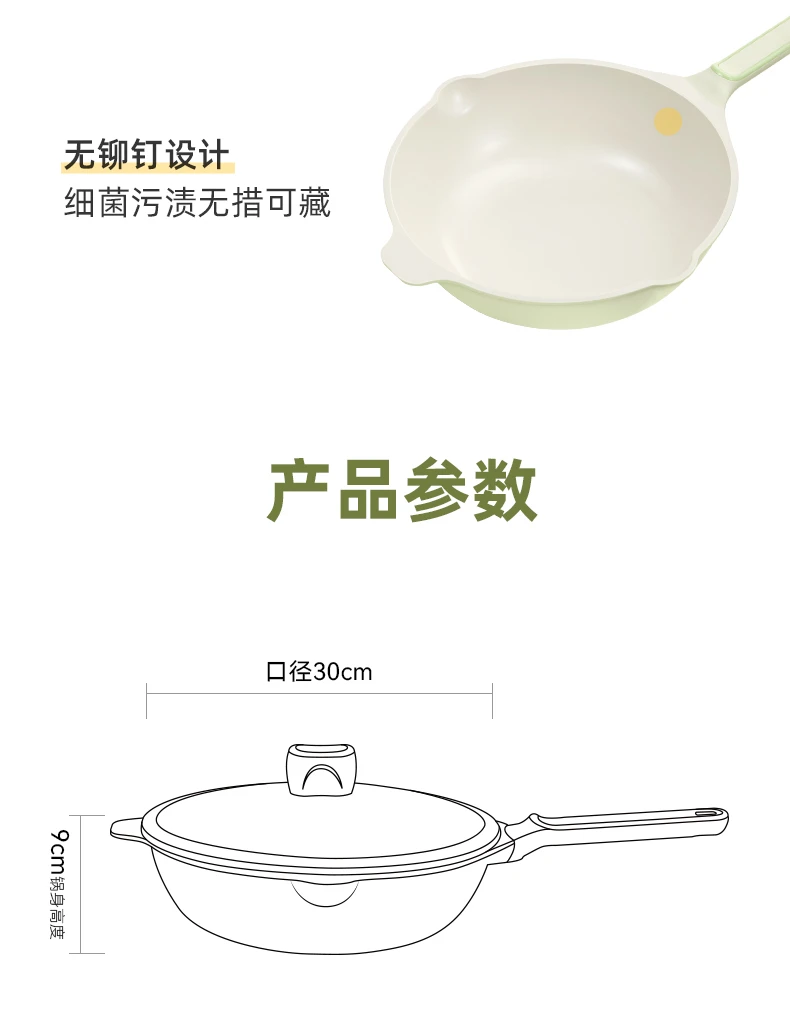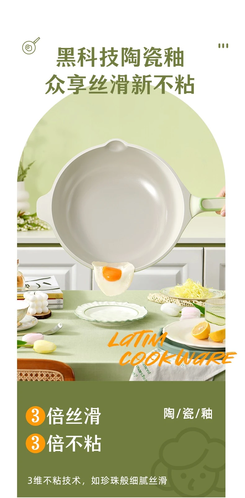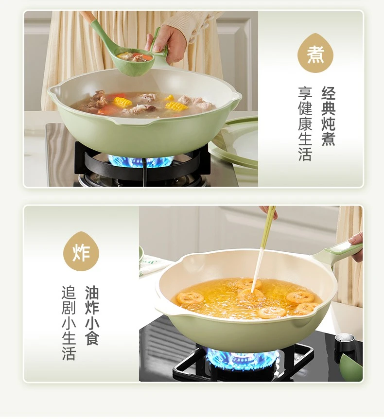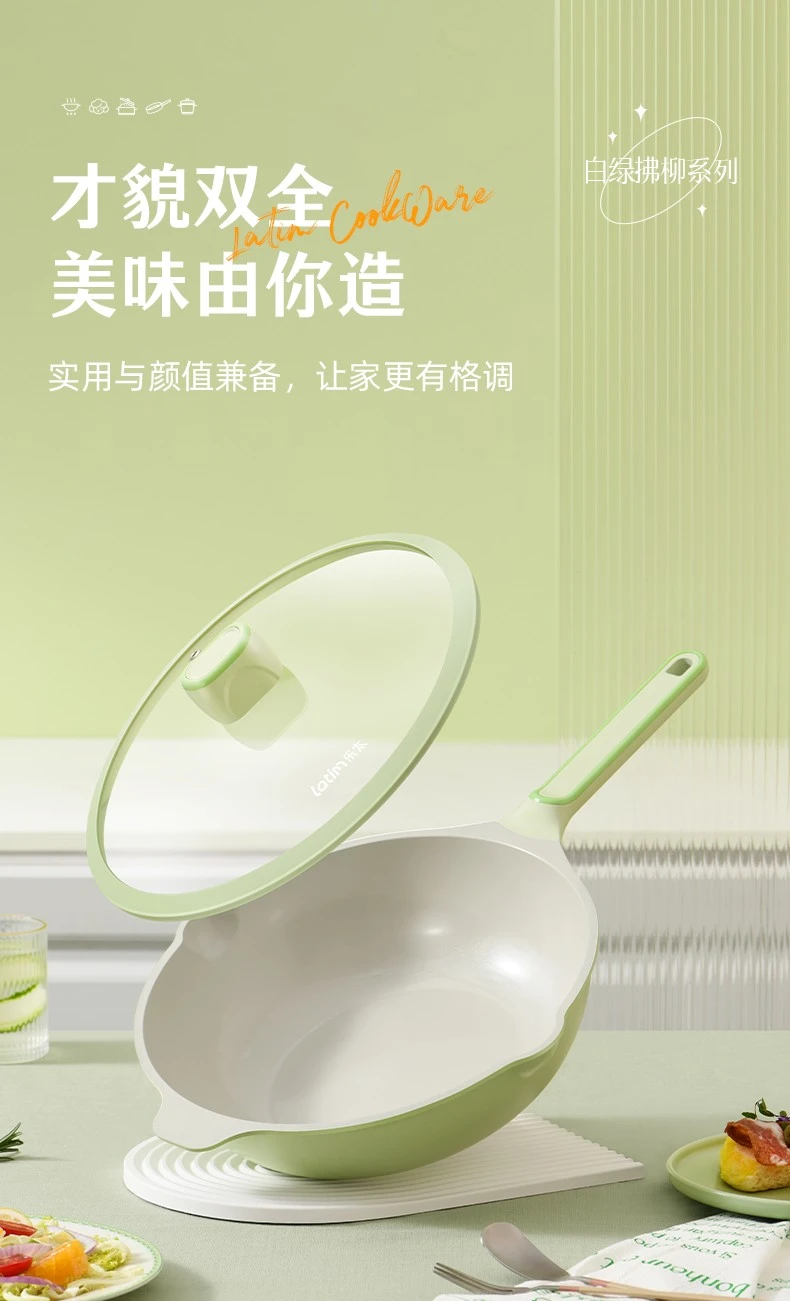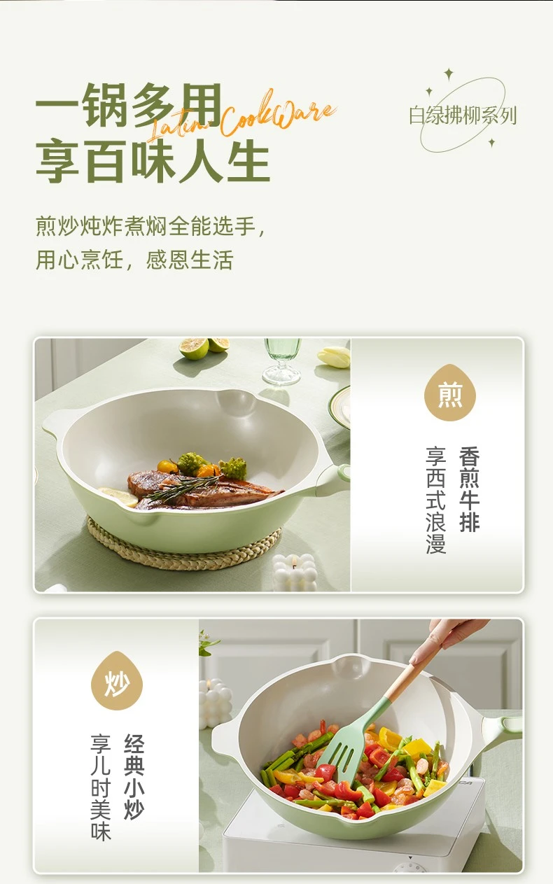 乐太白绿拂柳陶瓷多功能不粘炒锅