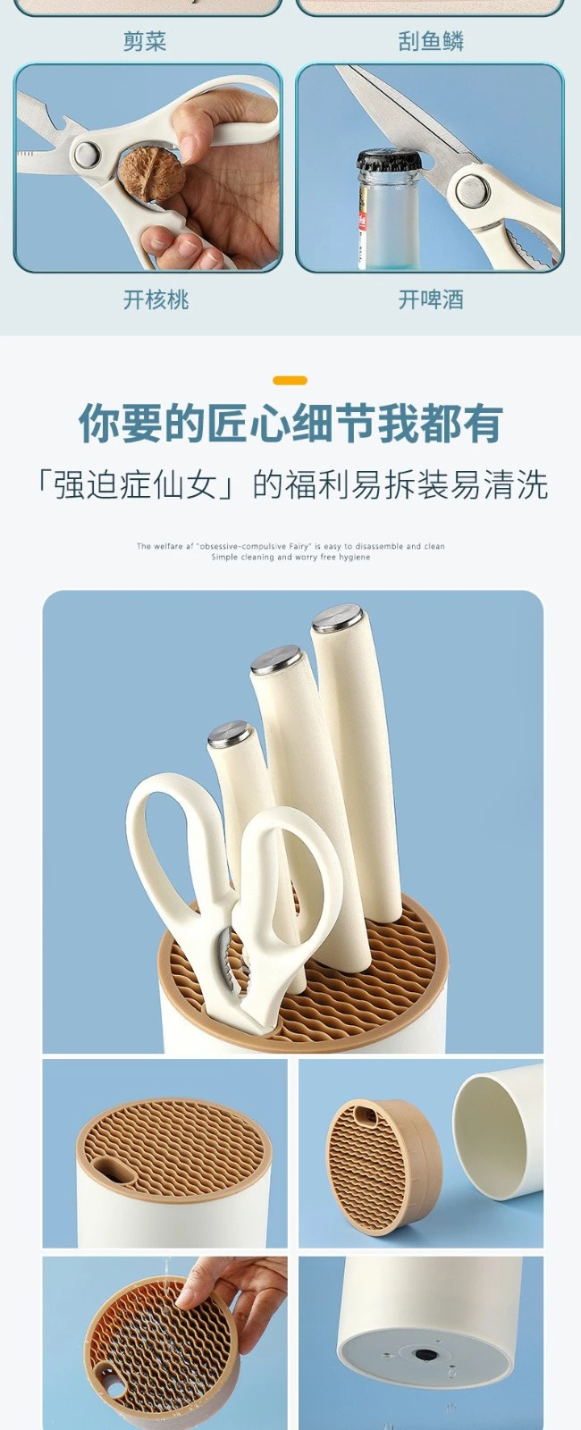 Non-slip 4pcs Knife Set Chef's Knife X1 Santoku Knife X1 Paring Knife X1 Shears X1