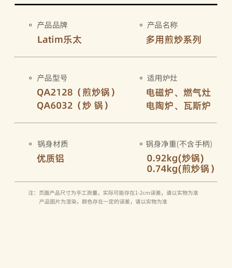 latim乐太多用煎炒系列压铸煎炒锅带盖
