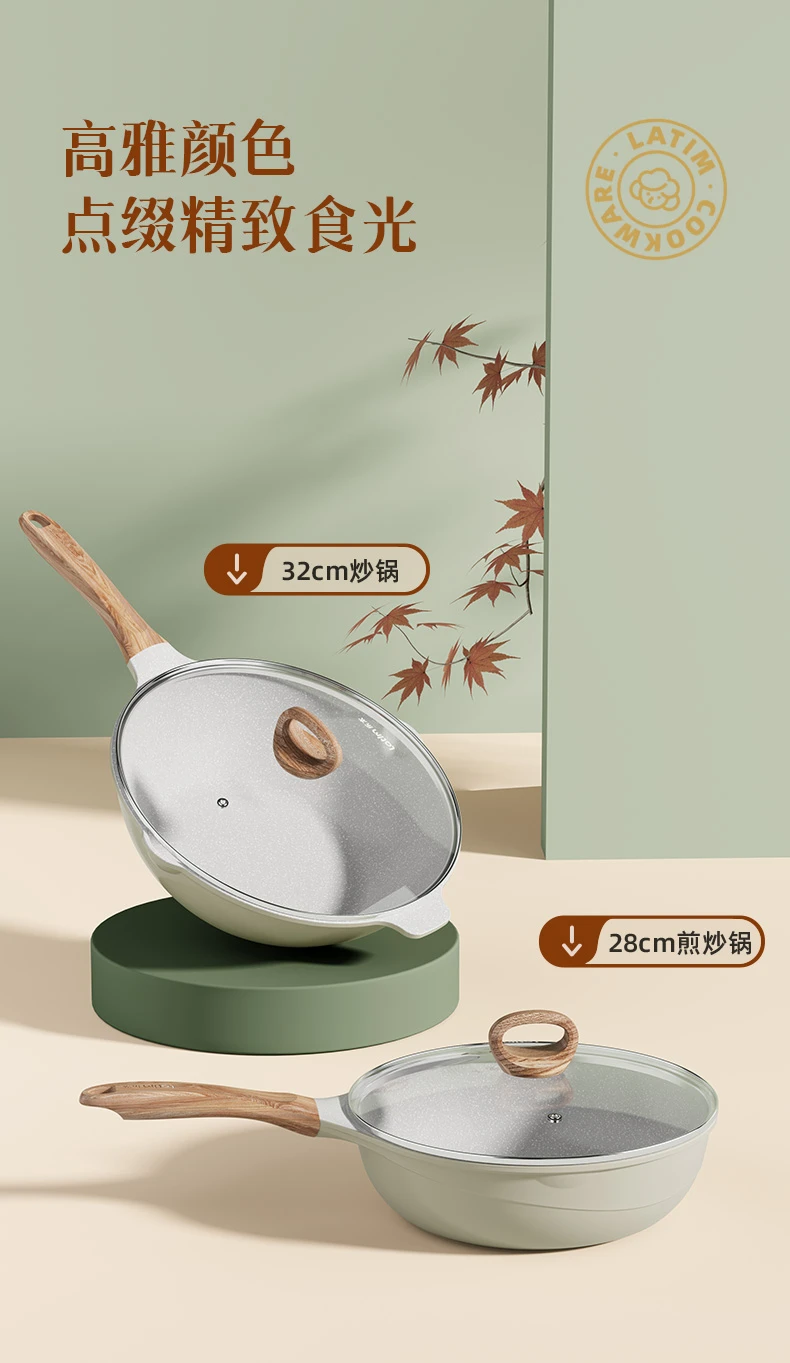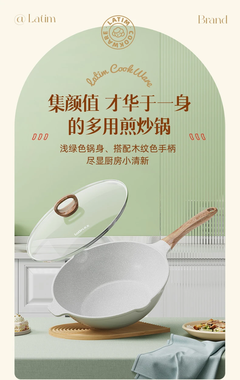 latim乐太多用煎炒系列压铸不粘炒锅带盖